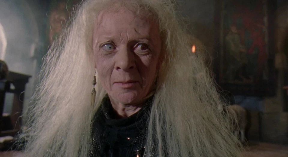 Tak więc przed Wami postać z mojego najukochańszego filmu z dzieciństwa - "Robin Hood: książę złodziei". Oto Mortianna, stara, wyjątkowo paskudna z wyglądu wiedźma, która rezyduje w podziemiach zamczyska szeryfa z Nottingham. To ona wyczytuje w runach szeryfowi sposób na zawładnięcie tronem Anglii poprzez małżeństwo z Lady Marion, podpowiada mu wynajęcie Celtów z Północy, aby zniszczyć osadę Robina, atakuje Azeema piką, no i prawdopodobnie brała udział w torturowaniu Duncana (oraz pewnie wielu innych mrocznych i złych wydarzeniach). Parę razy w filmie widać jednak, że gdzieś pod tym wszystkim kryje się całkiem niezłe, ironiczne poczucie humoru.